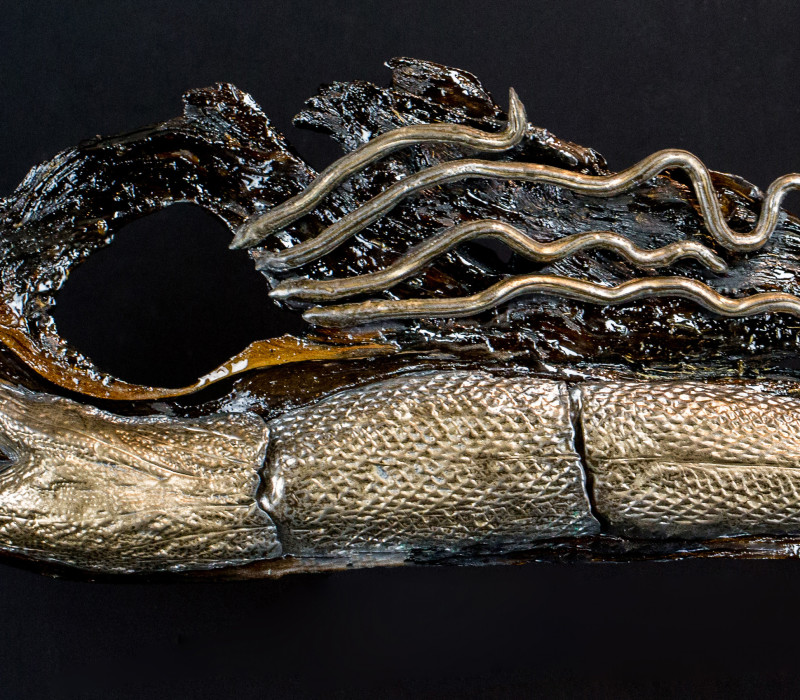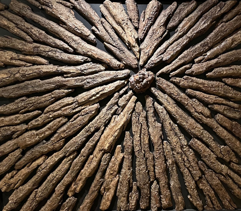 Écorces bois flotté d'eau de mer, loupe, cadre bois 44''H x 52''L
