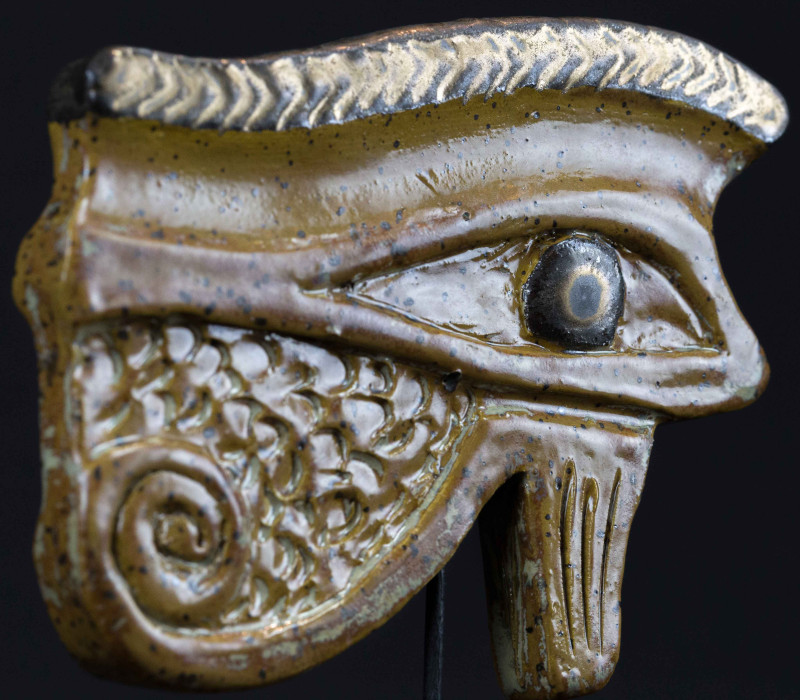 Symbole protecteur de l'Égypte antique. Grès émaillé 7'' x 5'' x 2''