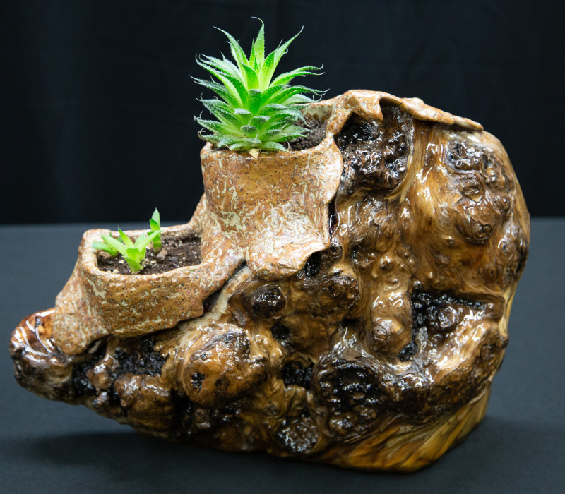 Fusion Grès & Loupe de Thuya ancestral # Succulente 12''H x 15''L x 5''P